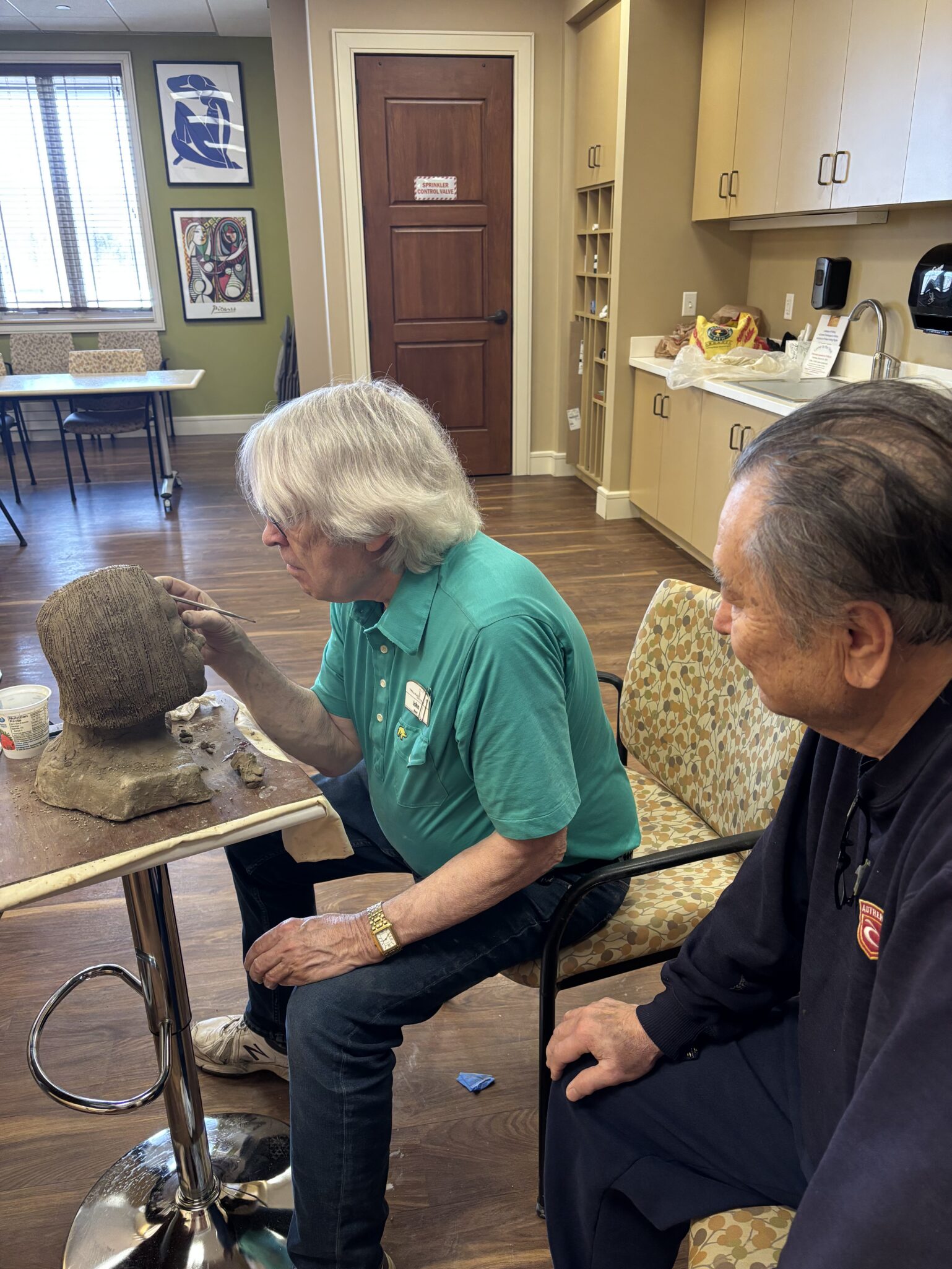 Felix enjoys talking with woodcarvers at the Maple Grove Community Center, as well as the fellow artists at Trillium Woods who display their work at the community.